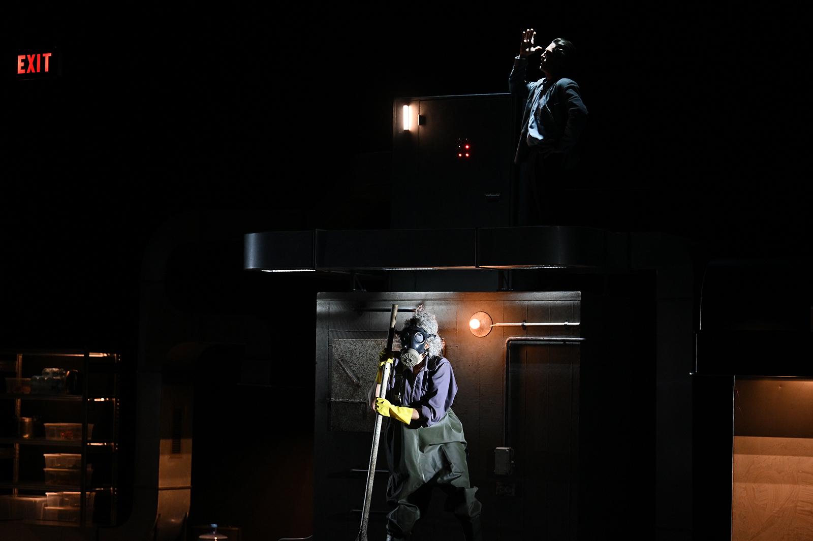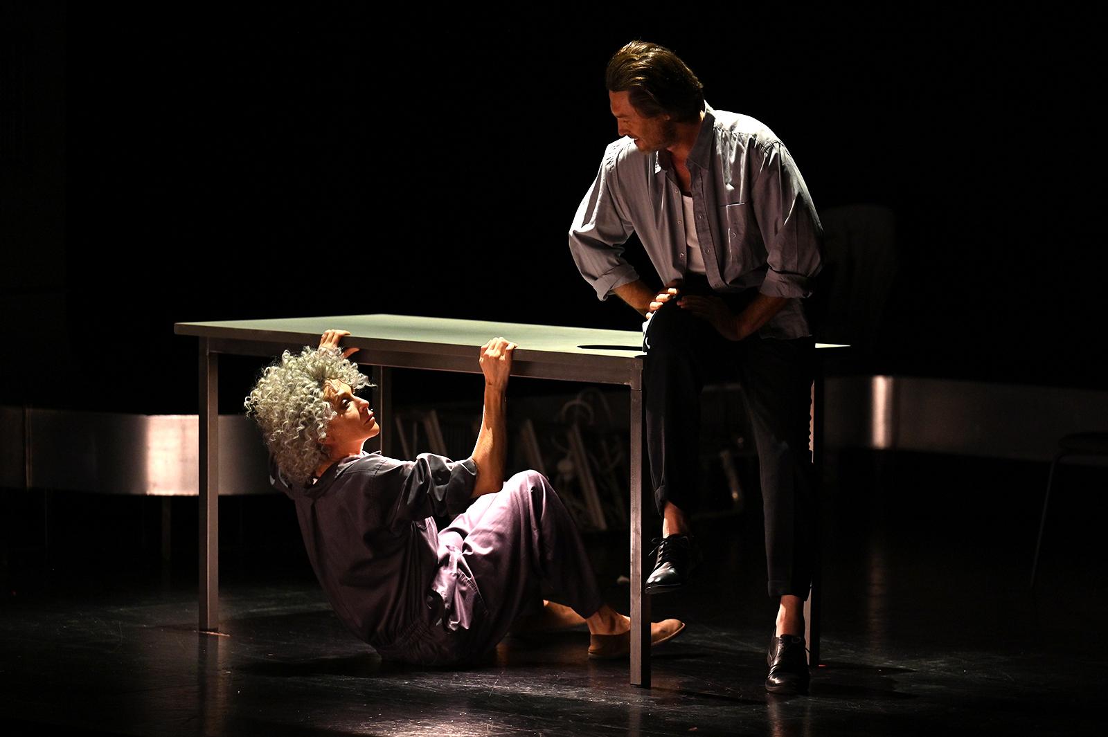 Они оба оказываются в новом мире, сложенном из осколков прежней жизни — будто знакомом, но при этом гротескном пространстве. Сценическое пространство, созданное художницей Ксенией Перетрухиной, также состоит из отдельных фрагментов повседневных сцен, сливающихся в новую — одновременно парадоксальную и логичную — мозаику.